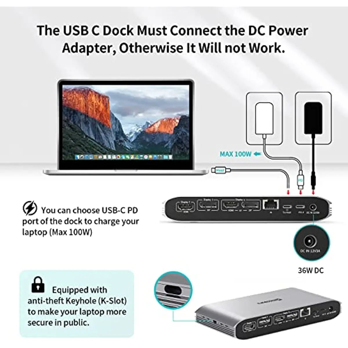Commandez dès maintenant et boostez votre productivité ! Minisopuru-Station d'accueil à triple affichage Displayexhaus, pour MacPleDallas M2 M3 figuré Windows avec 2 ports HDMI 4K DisplayPort PD RJ45 HUB USB