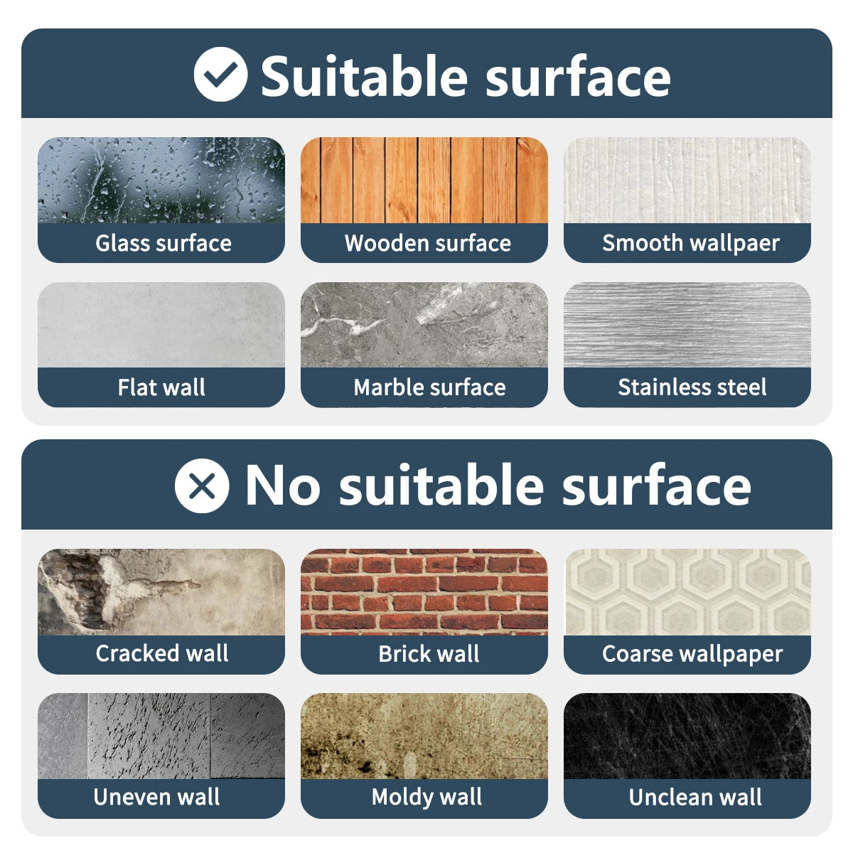 Compatibilité : Murs, carrelages, vitres, meubles, portes