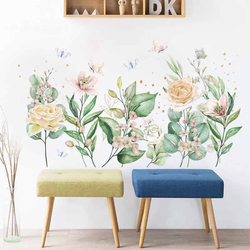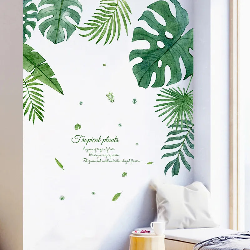 - Motifs : Plantes tropicales fleuries, autocollants muraux décoratifs, papier de décoration murale.