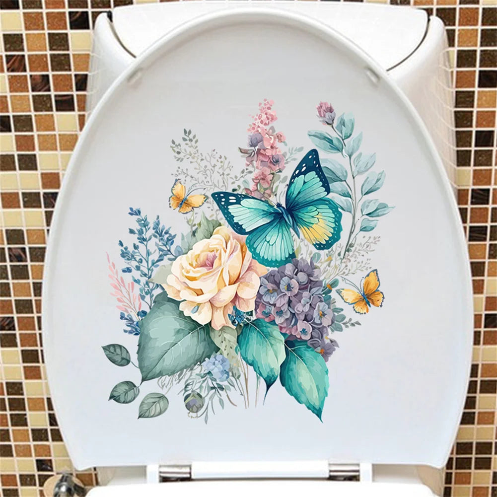 Stickers Toilettes Papillons & Fleurs – Élégance Murale Étanche
