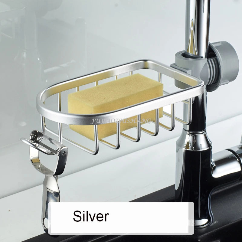 Support Évier Aluminium Rangement Éponge Salle Bain