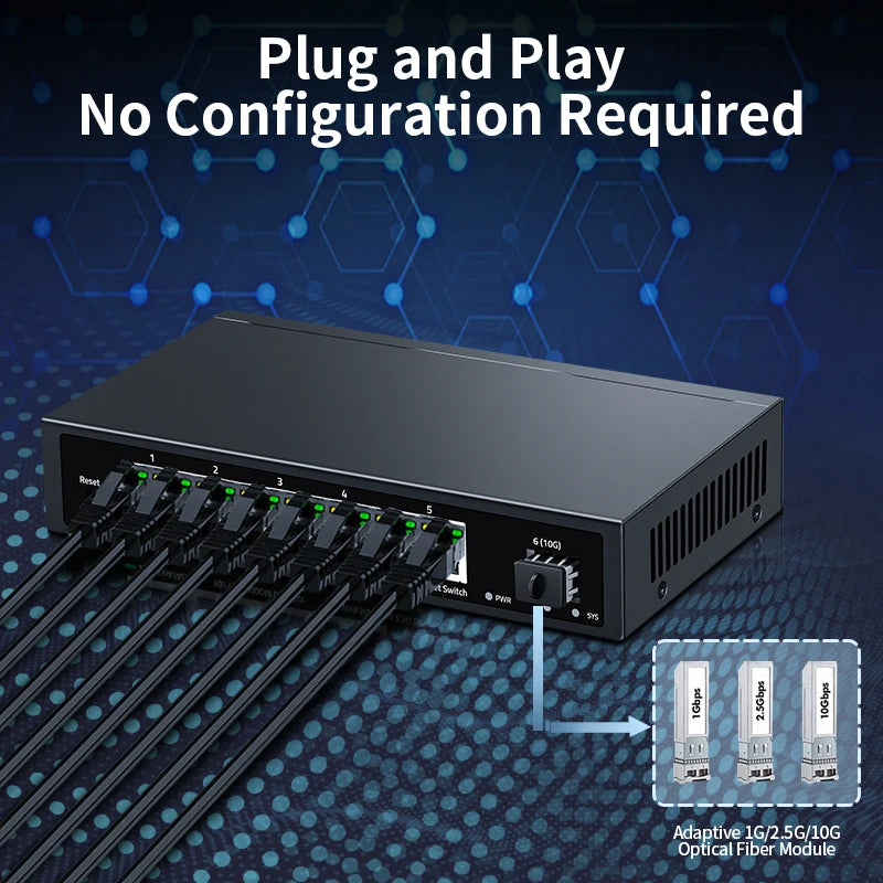 Équipez votre infrastructure réseau d’une solution hautement performante avec le switch réseau HORACO ZX-SWTGW215AS. Conçu pour les utilisateurs exigeants, ce switch intelligent associe vitesse, fiabilité et fonctions de gestion avancées, que ce soit pour un usage professionnel, domestique ou intensif en multimédia. Grâce à ses 5 ports RJ45 2,5 GbE et 1 port SFP+ 10G, il garantit une bande passante exceptionnelle, idéale pour les transferts lourds, le streaming 4K, les NAS ou encore les réseaux d’entreprise.