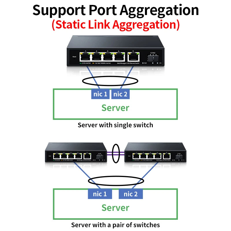 - Support VLAN et agrégation de liens (LACP) pour une segmentation réseau efficace et une redondance optimisée