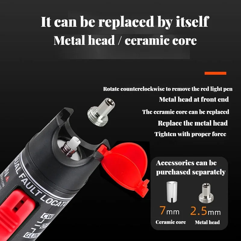 - Fonction : Localisateur de défauts visuel, conçu spécifiquement pour les câbles optiques FTTH