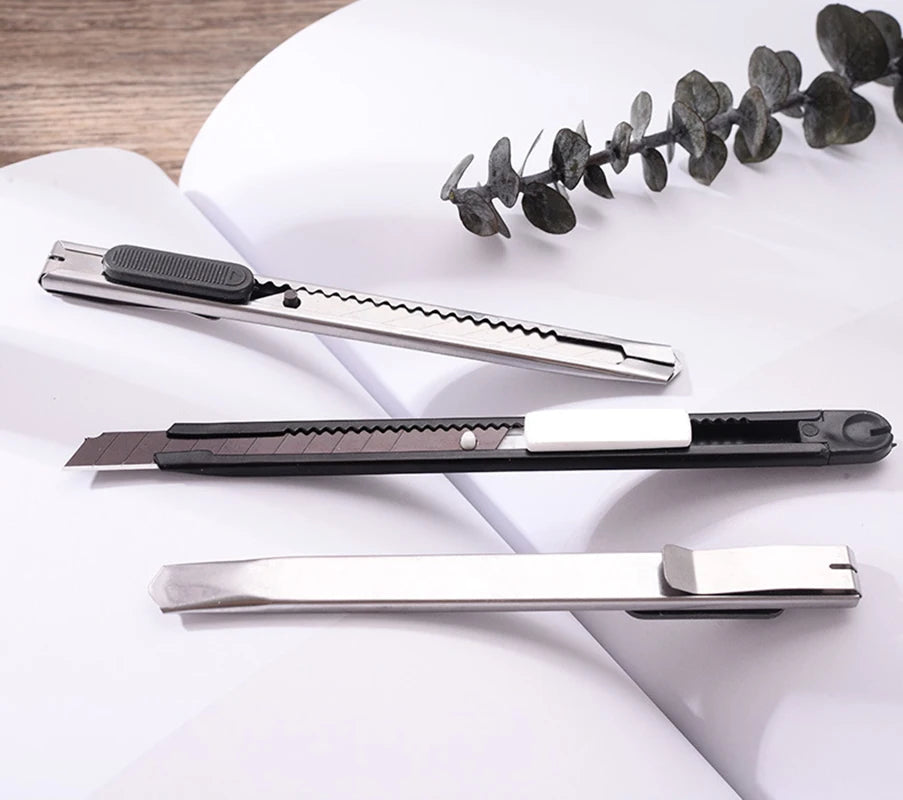 Cutter de Bureau Inox JESJELIU – Lame Rétractable Ultra Précise
