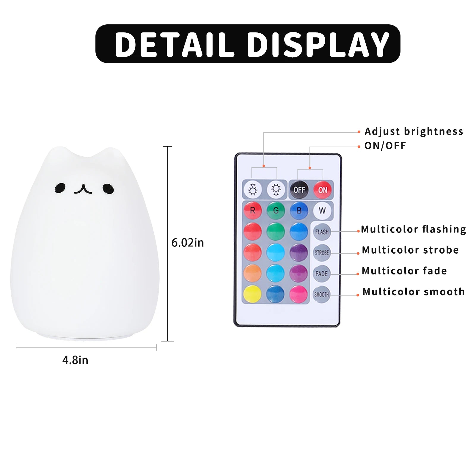 Titre : Veilleuse Chat LED Tactile – Silicone Doux, 7 Couleurs