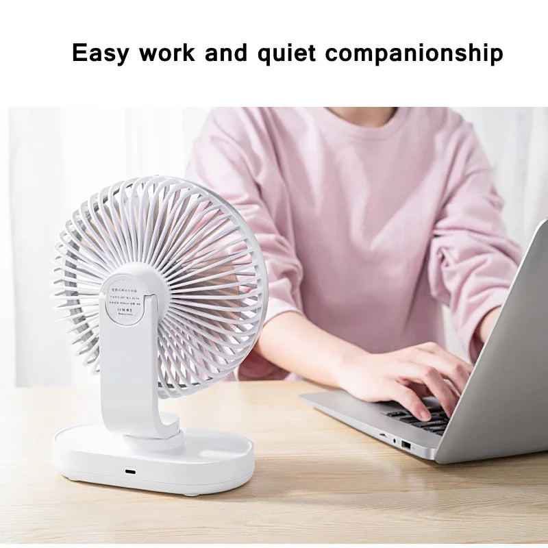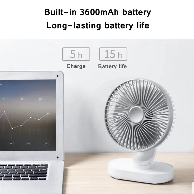 Rafraîchissez votre espace avec ce ventilateur de bureau USB électrique offrant une rotation automatique. La batterie rechargeable 3600mAh assure plusieurs heures de refroidissement sans fil. Profitez de 4 vitesses de vent ajustables, d'un fonctionnement silencieux et d'une portabilité optimale.