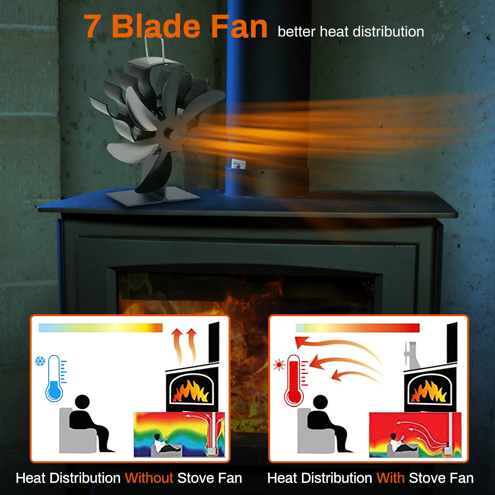 Ventilateur de Poêle à Bois 7 Pales - Performance et Efficacité Thermique