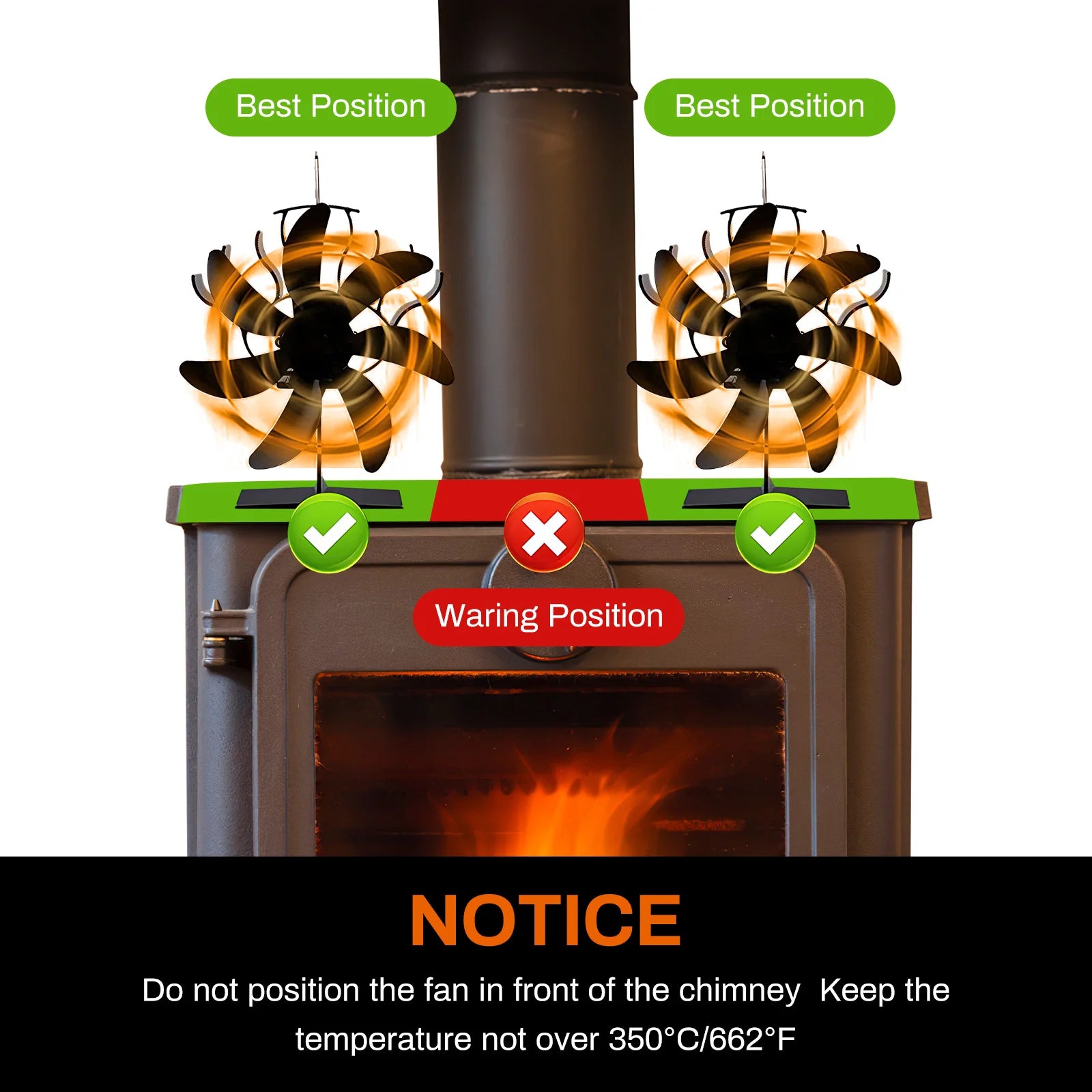 - Placez le ventilateur directement sur le dessus de votre poêle à bois.