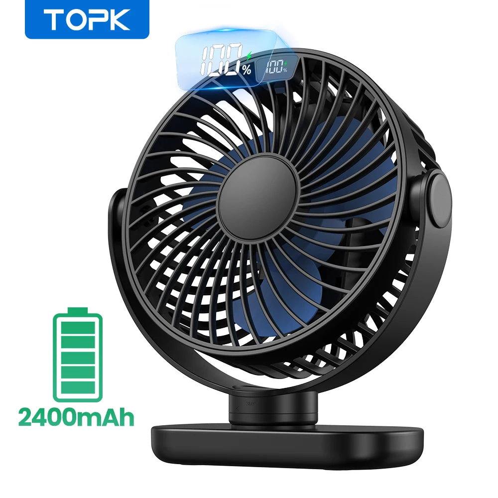 Ventilateur Mini Portable TOPK K60C - Autonomie 5000mAh, Rotation 360°, Écran LED