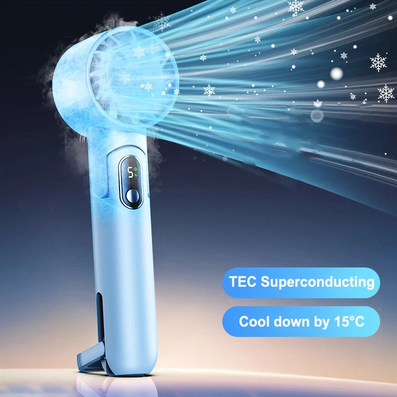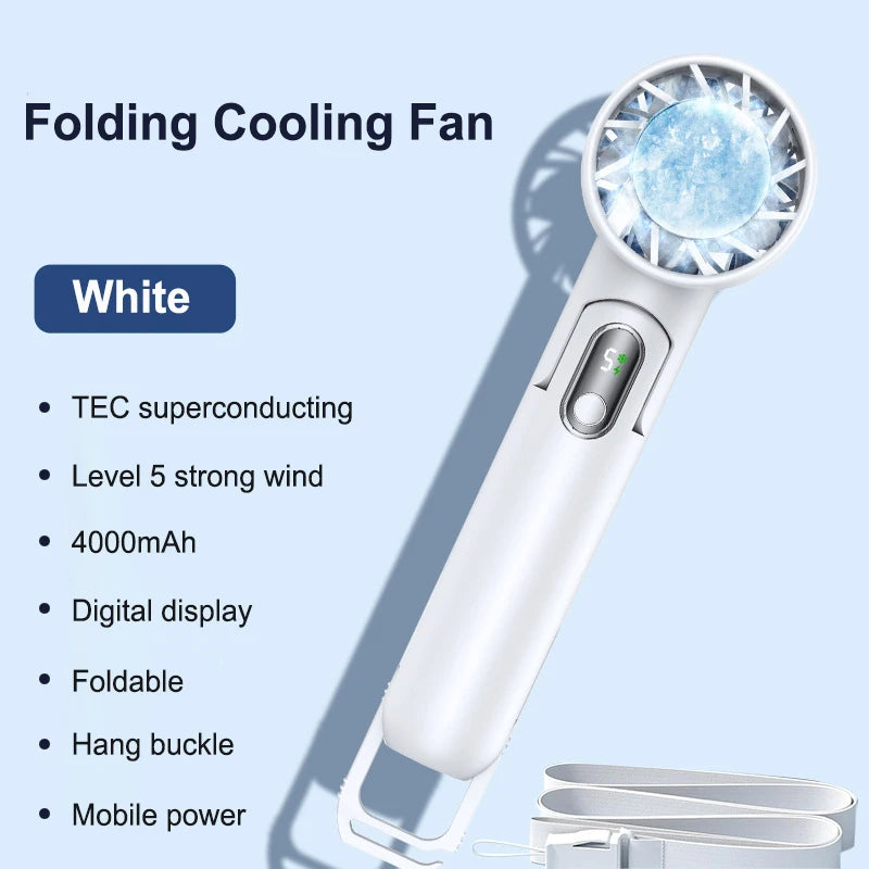 Découvrez le ventilateur portable optimisé pour offrir un refroidissement efficace où que vous soyez. Sa batterie rechargeable de 4000mAh vous assure une autonomie prolongée, idéale pour une utilisation en extérieur ou au bureau. Grâce à sa technologie de refroidissement à semiconducteurs, profitez d'une fraîcheur instantanée. L'écran LED numérique intégré vous permet de contrôler facilement les réglages. Léger, compact et pratique, ce ventilateur est parfait pour vous rafraîchir en toutes circonstances, que ce soit lors de vos activités en plein air ou au travail.